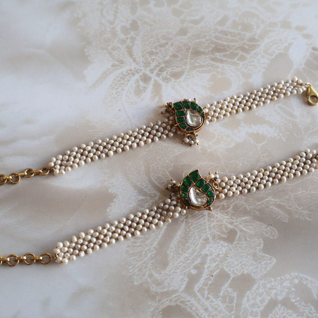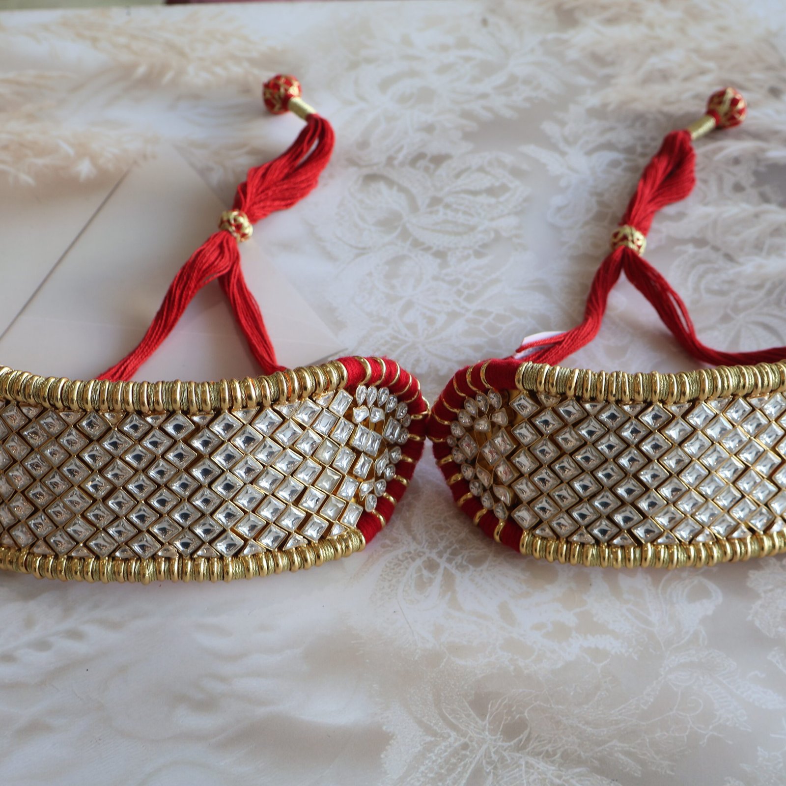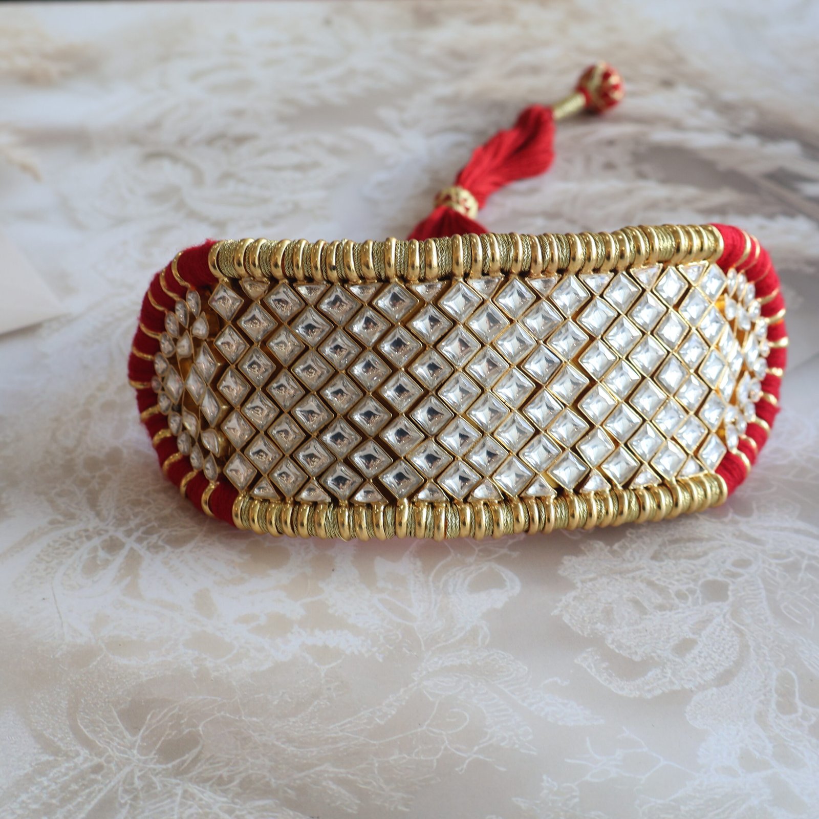 Designed to sit comfortably on the upper arm, this handcrafted Bhajuband adds a regal touch to bridal and festive ensembles. Perfect for weddings, cultural celebrations, and special occasions, it enhances ethnic attire with understated sophistication and enduring charm.