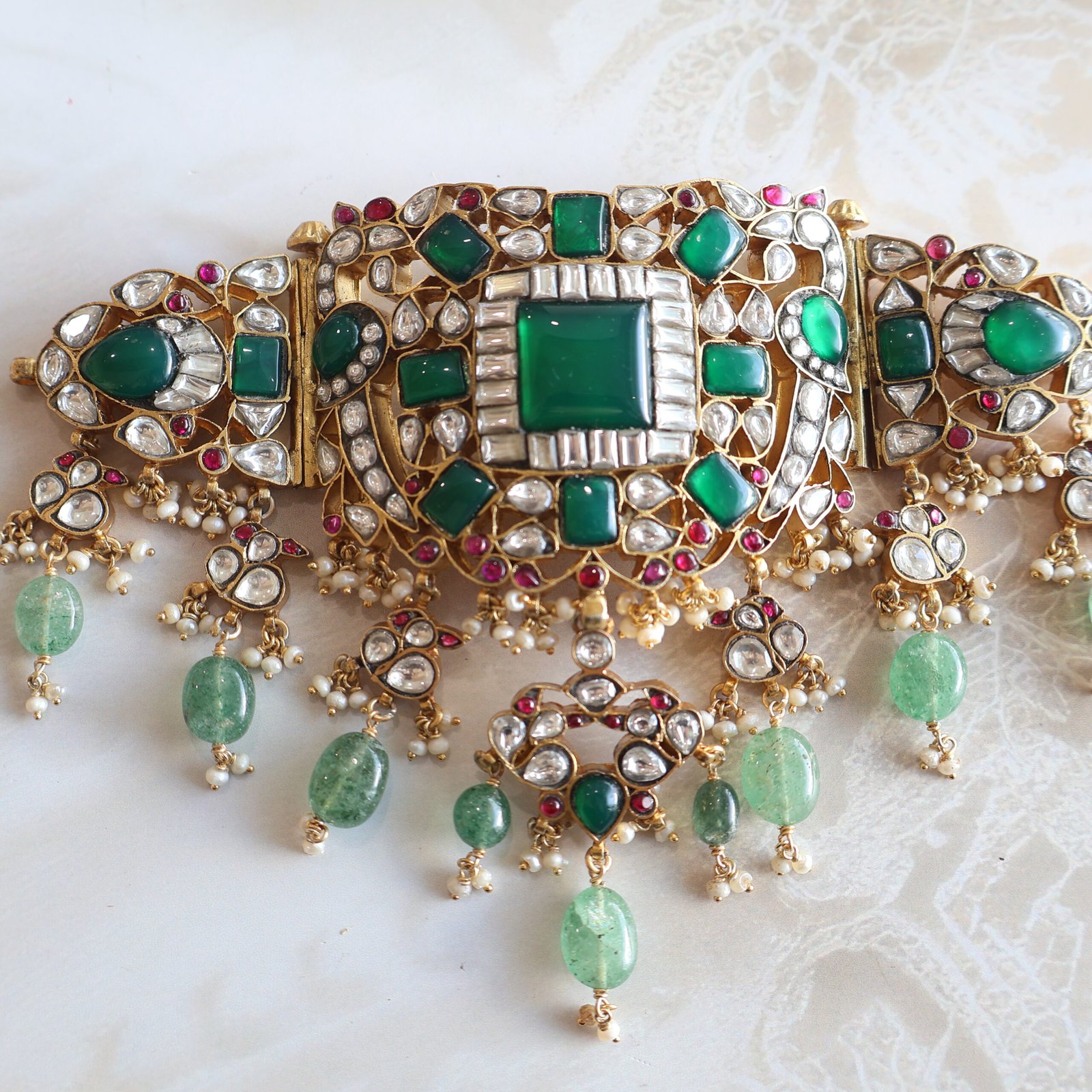 Designed to sit comfortably on the upper arm, this Bhujband is perfect for bridal wear, weddings, and festive celebrations. Its intricate craftsmanship and graceful detailing make it a statement accessory that enhances traditional attire with sophistication and charm.