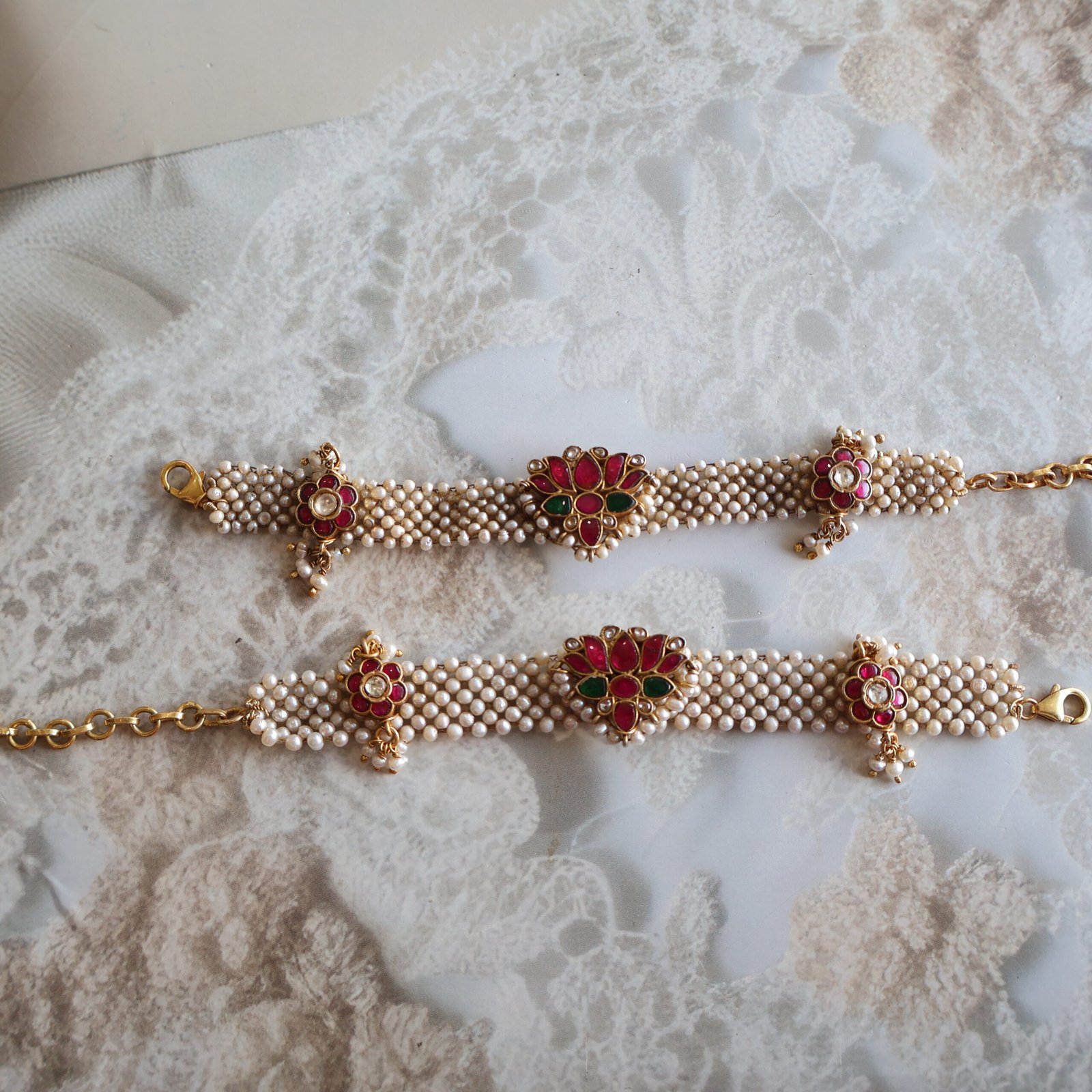 Studded with handcrafted kundan stones and freshwater pearls