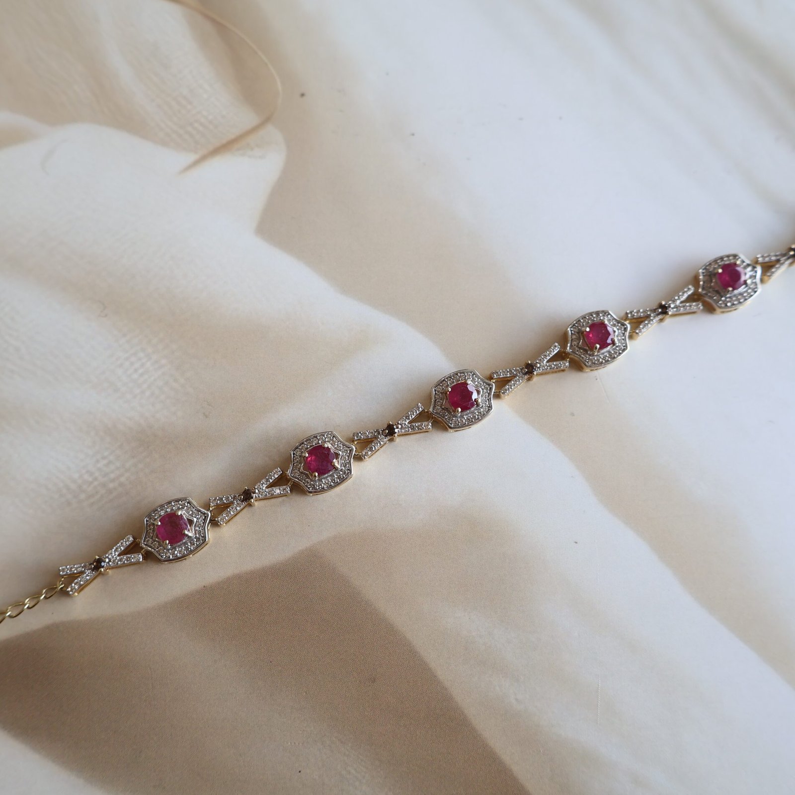 92.5 silver bracelet studded with rubies, zircons, and natural gemstones for an elegant and timeless look.