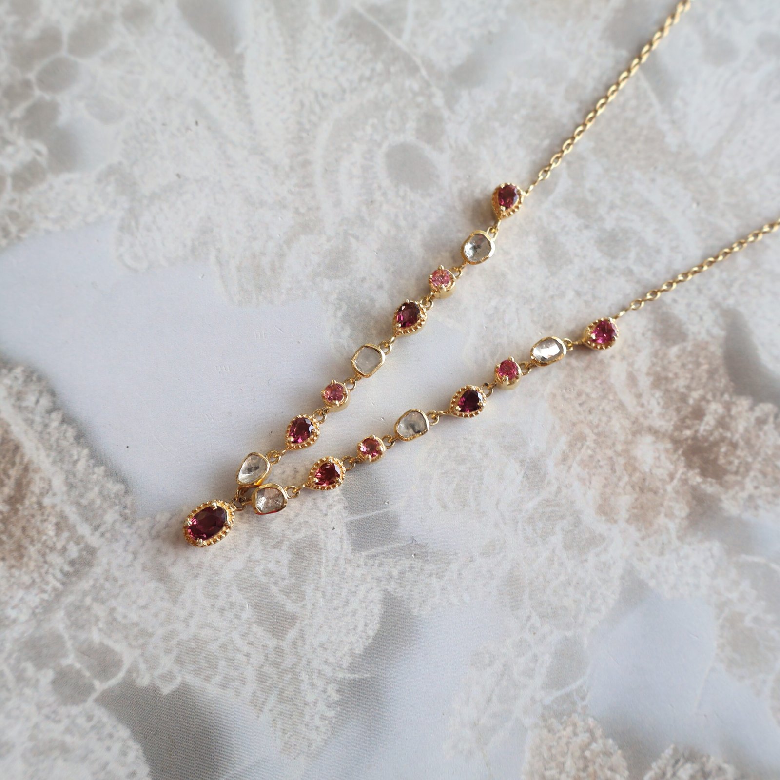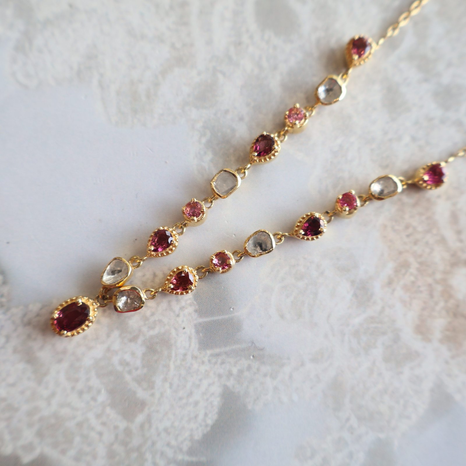 This exquisite 92.5 silver chain is a perfect harmony of colour and brilliance. Enhanced with an elegant gold polish, the design features radiant multicolour tourmaline stones that bring lively hues, beautifully complemented by the subtle sparkle of diamond polkies.