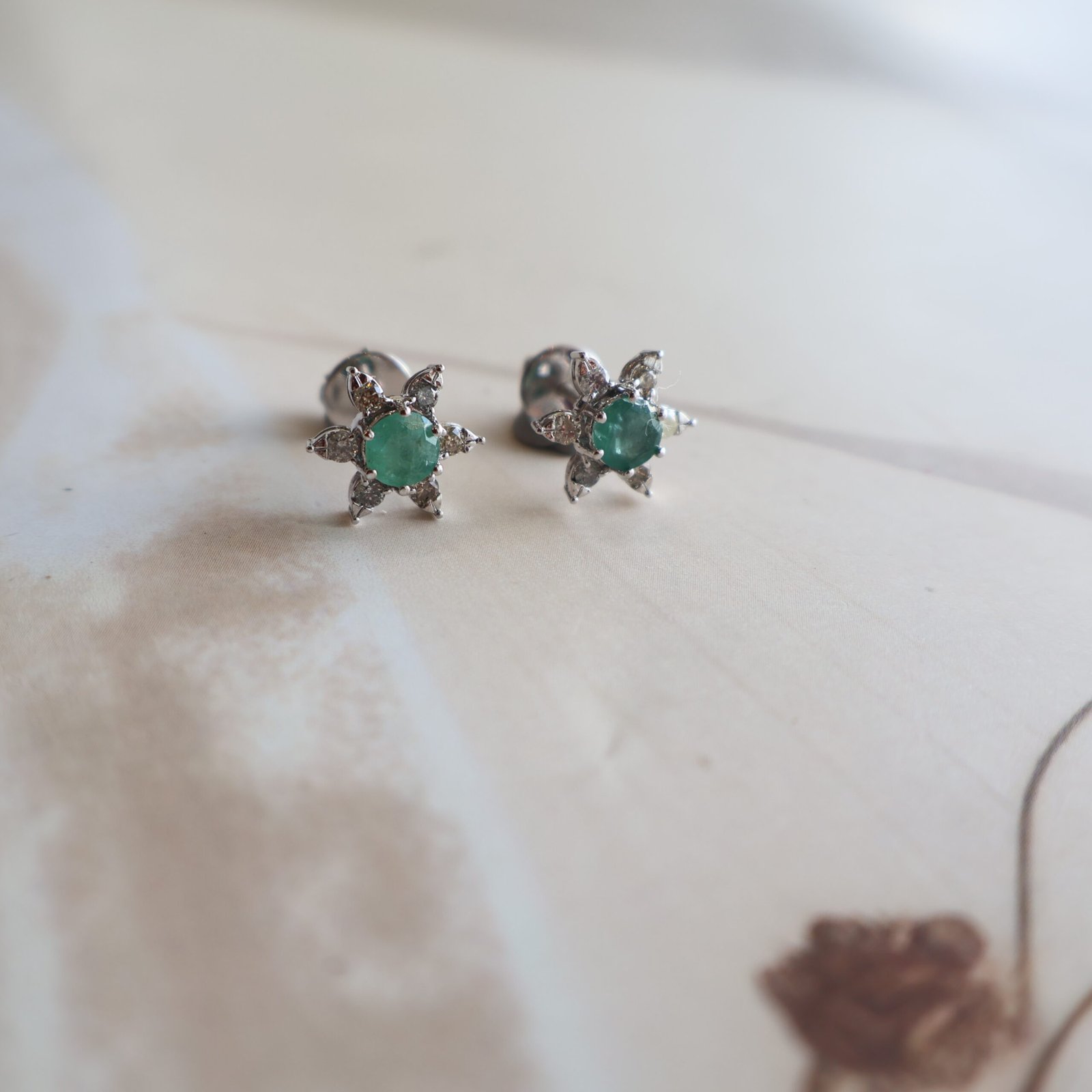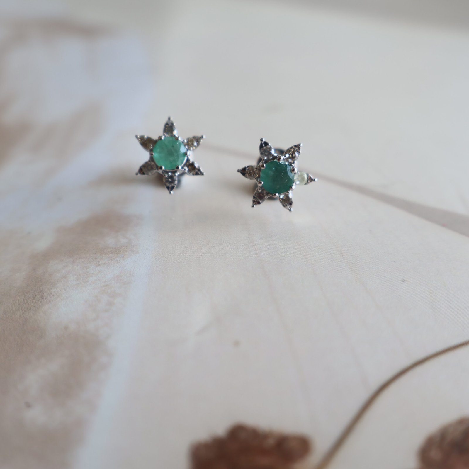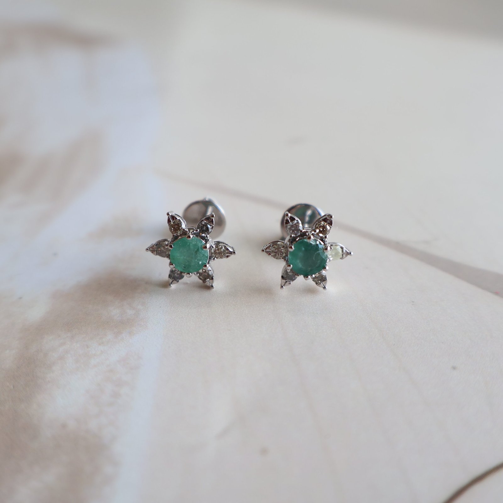 These elegant earrings are crafted in 92.5 pure silver and beautifully studded with rich green emerald stones and sparkling diamond stones. The fresh green colour of emeralds combined with the shine of diamonds creates a graceful and timeless look. Finished with smooth polished silver, these earrings are comfortable to wear and perfect for daily elegance as well as weddings, festivals, and special occasions.