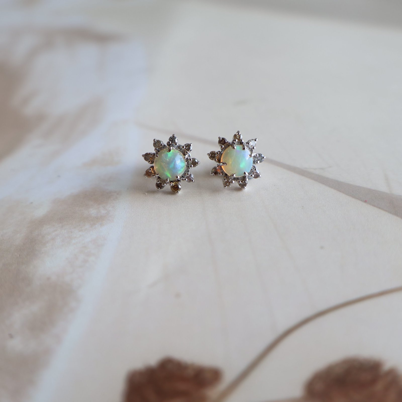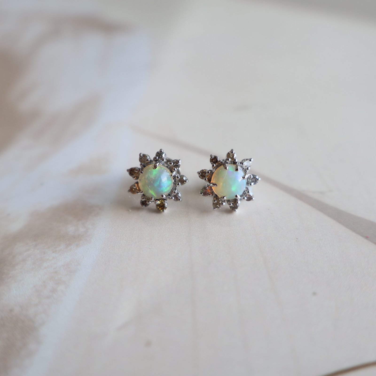 92.5 silver earrings studded with opals and diamonds for a soft, elegant shine.