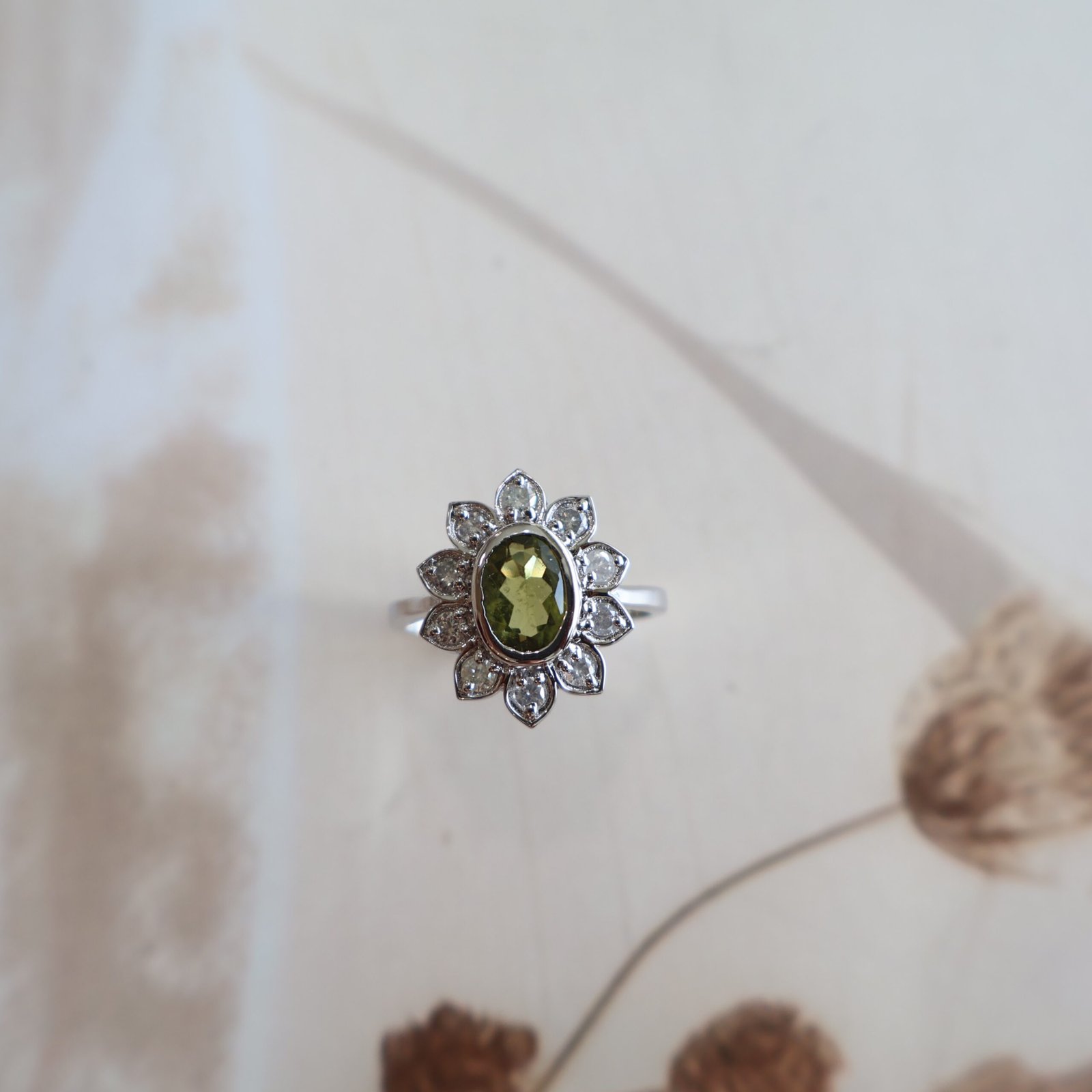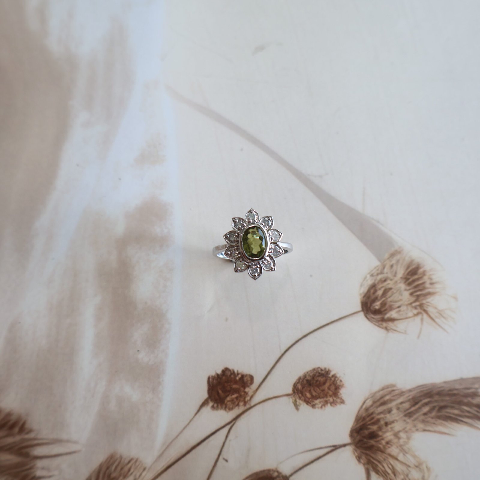 92.5 silver ring studded with diamonds and verdelites for a refined and elegant look.