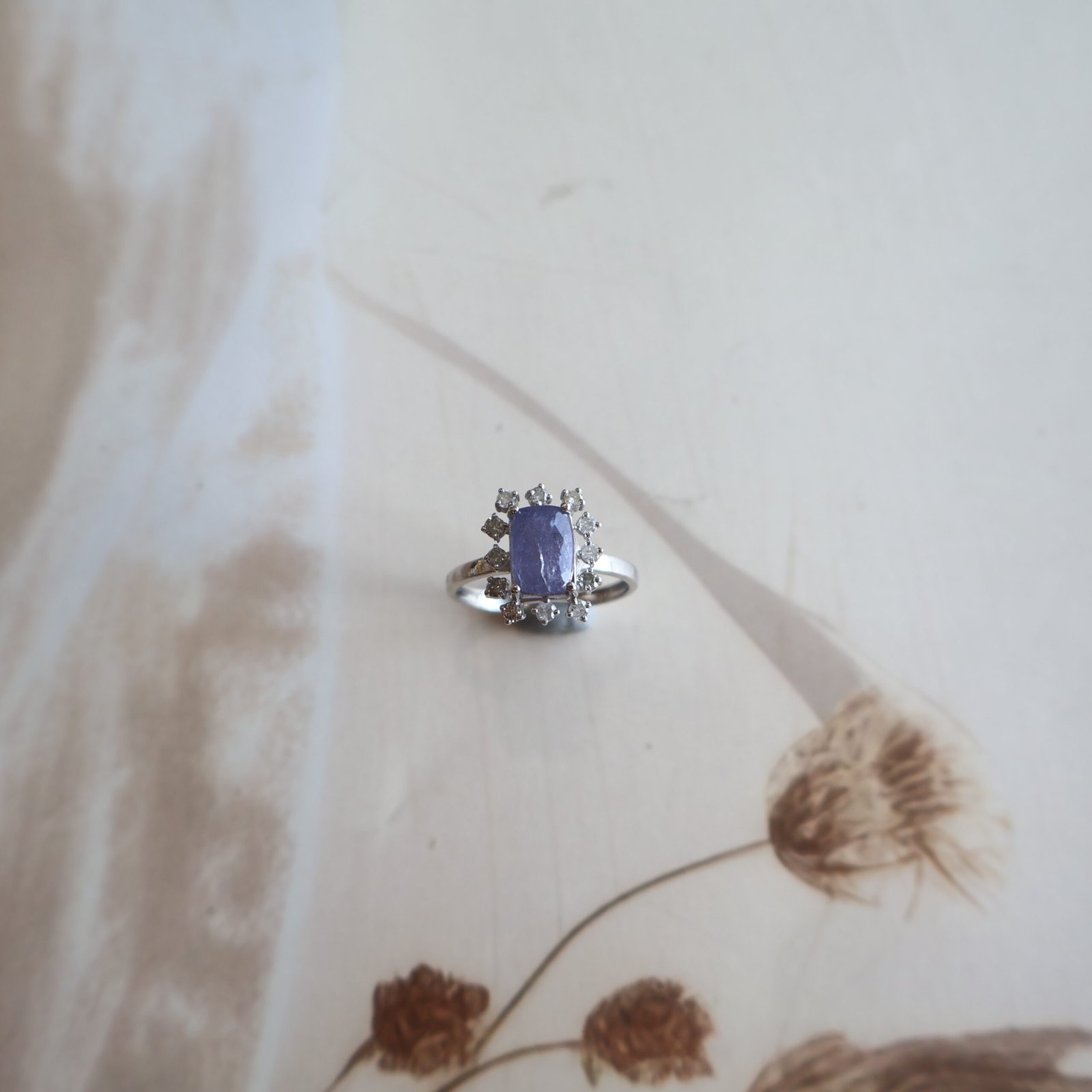 92.5 silver ring studded with diamonds and tanzanite for a refined and elegant look.