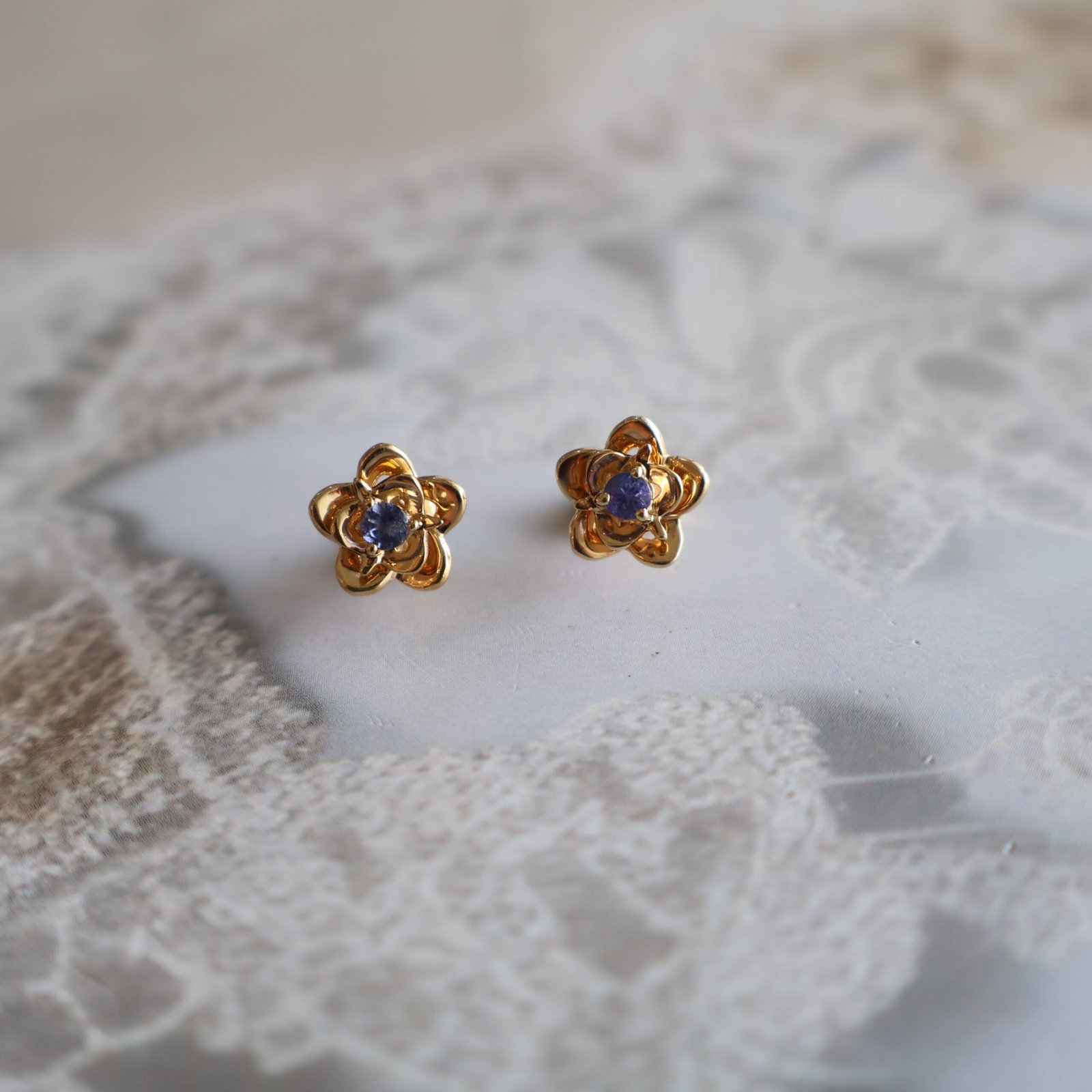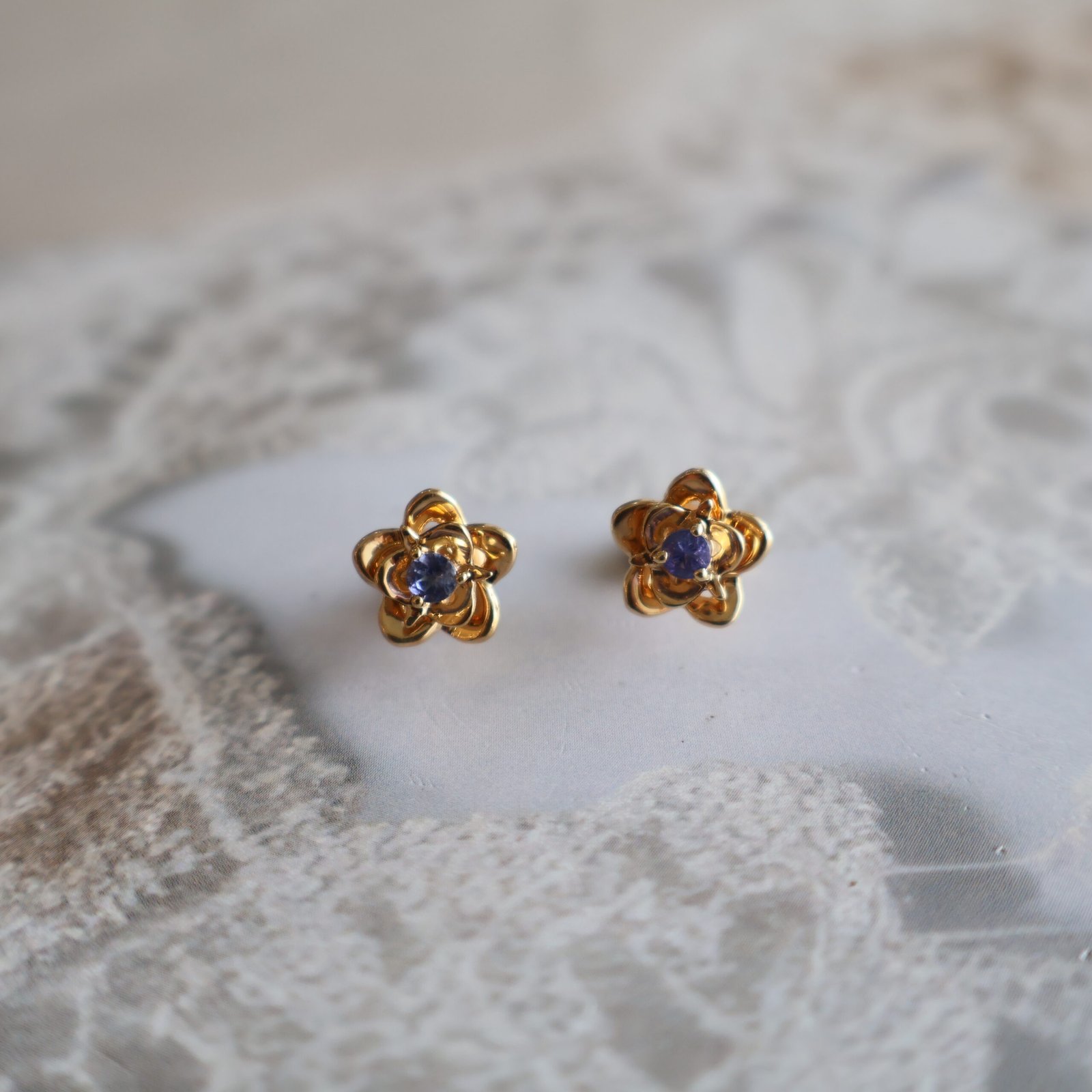 92.5 silver earrings with gold polish and tanzanite stones for a luxurious and regal statement look.