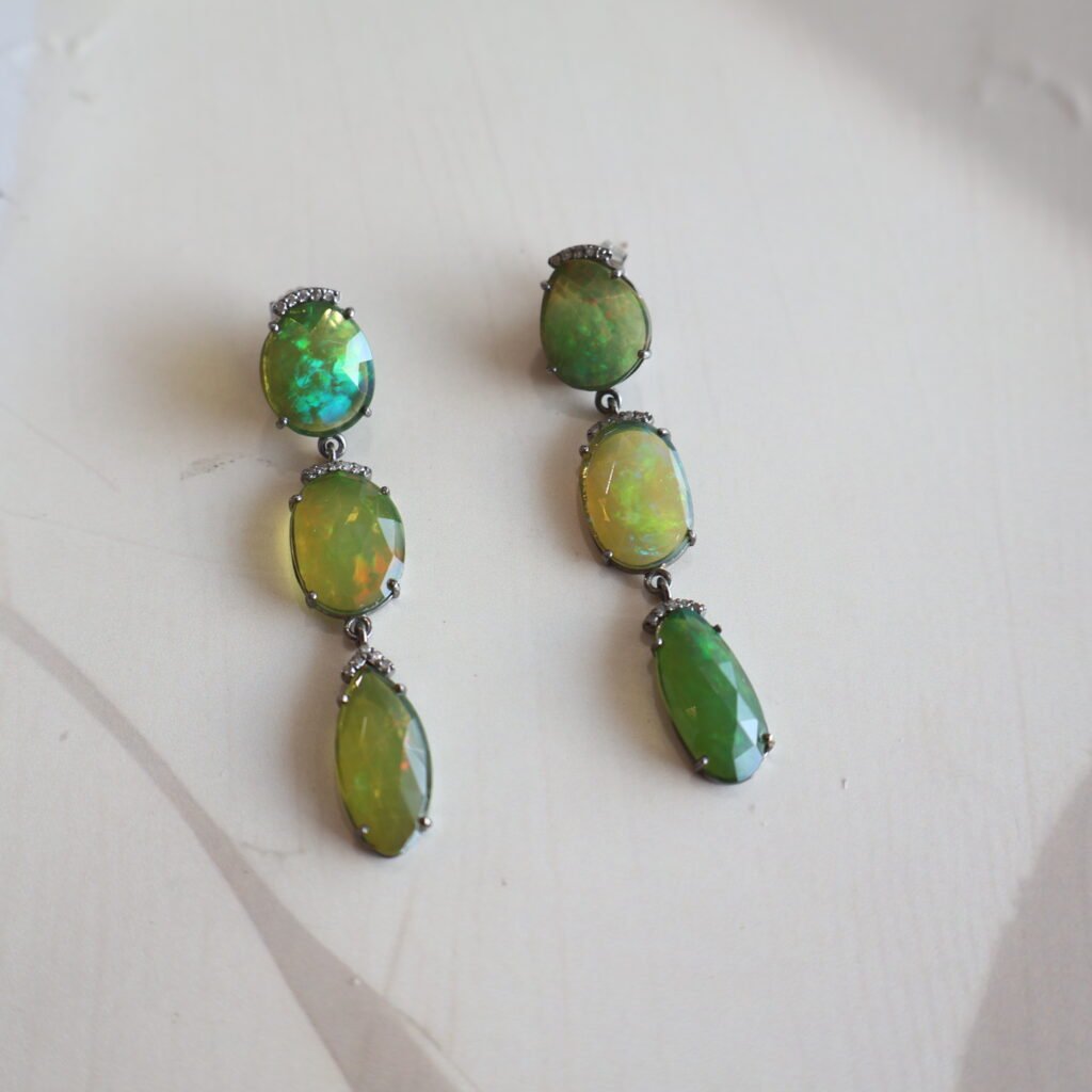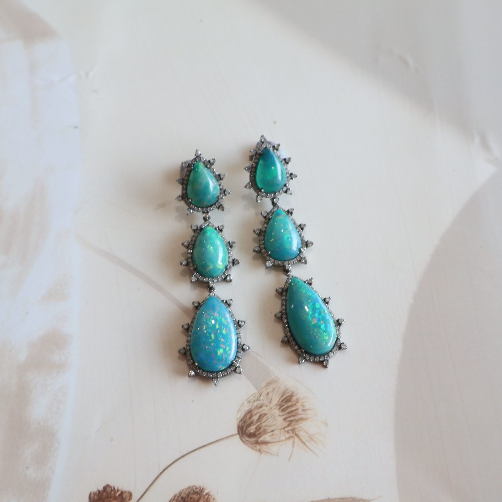 These delicately handcrafted 92.5 sterling silver earrings celebrate understated luxury through a graceful combination of opals and diamonds. The natural iridescence of opals brings a soft, captivating glow, while the diamonds add a subtle yet refined sparkle, enhancing the overall sophistication of the design.