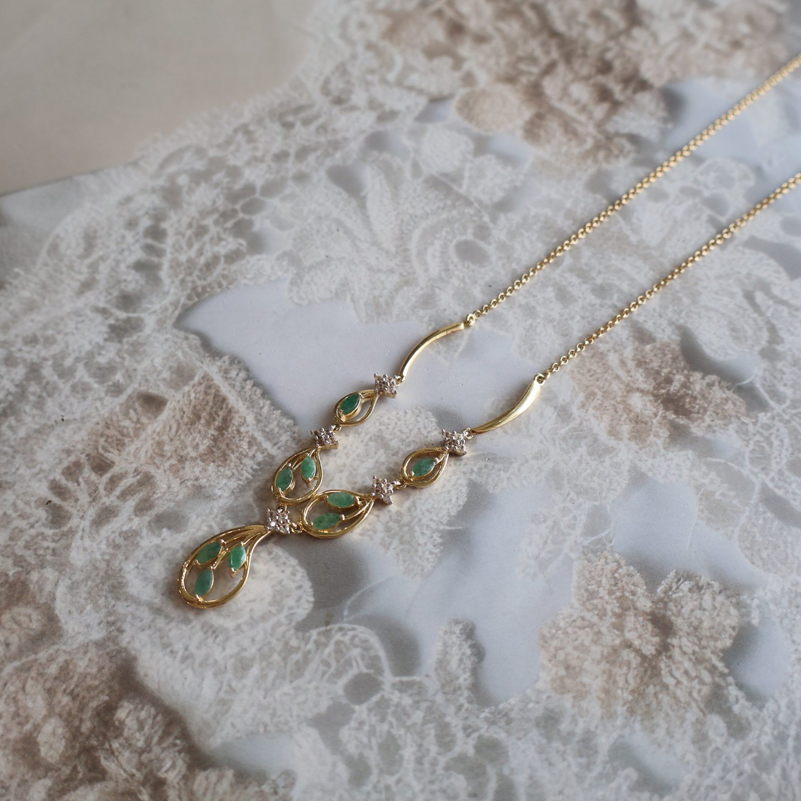 92.5 silver pendant with gold polish, studded with emeralds and zircons for a radiant and graceful look.