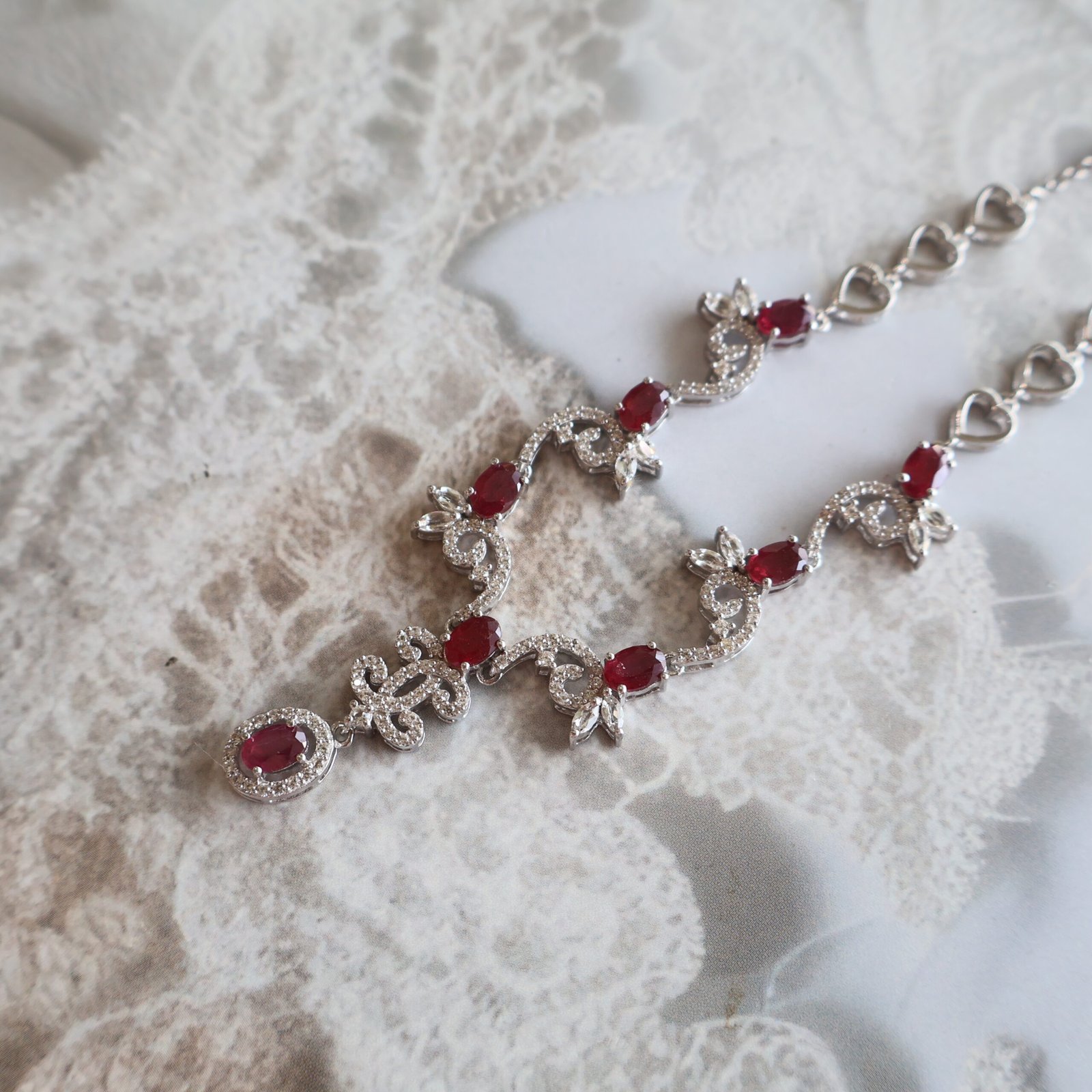 This beautiful jewellery piece is crafted in 92.5 pure silver and delicately studded with rich red ruby stones and sparkling zircon stones. The deep, vibrant tone of rubies adds a royal and luxurious charm, while the brilliant zircons enhance the shine with graceful sparkle. Smoothly polished for comfortable wear, this design is perfect for festive occasions, celebrations, and special events.
