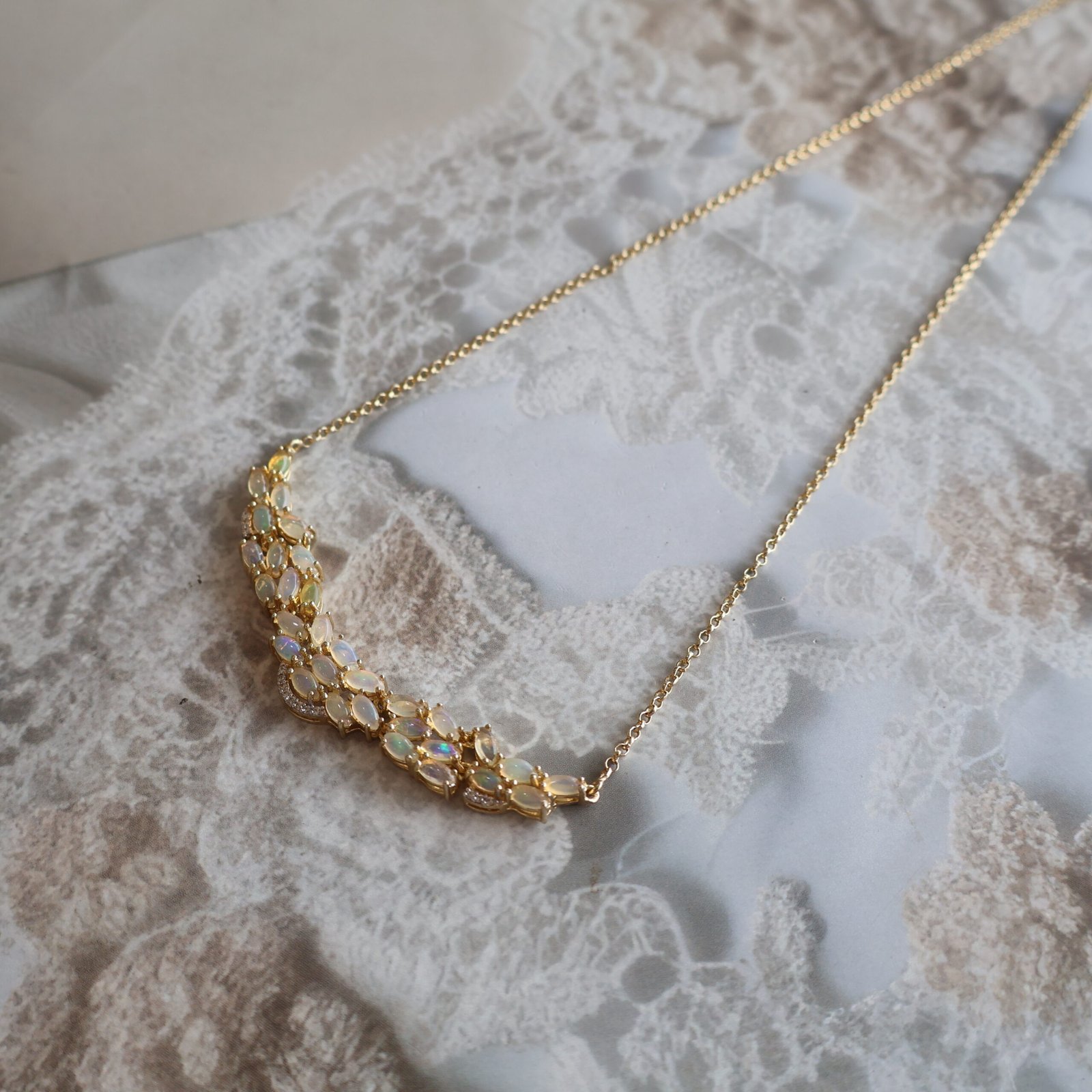 This stunning jewellery piece is crafted in 92.5 pure silver and finished with rich gold polish for a warm, luxurious glow. It is beautifully adorned with luminous opal stones and sparkling zircon stones, creating a perfect blend of softness and brilliance. opal pairs beautifully with the radiant sparkle of zircons, while the golden finish enhances the overall elegance. Smoothly polished for comfortable wear, this piece is ideal for festive occasions, parties, and special celebrations.