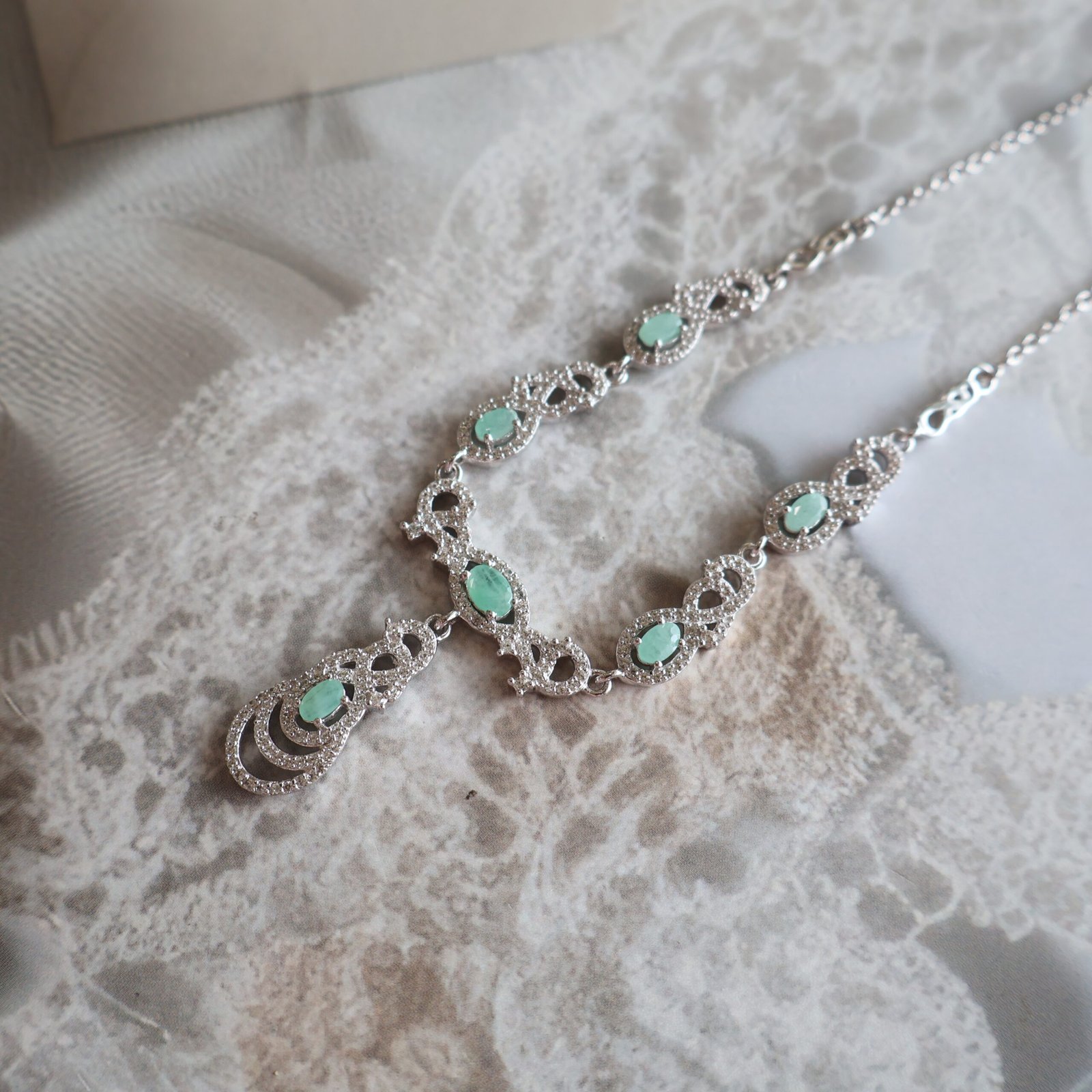 92.5 silver pendant studded with emeralds and zircons for a timeless and elegant look.