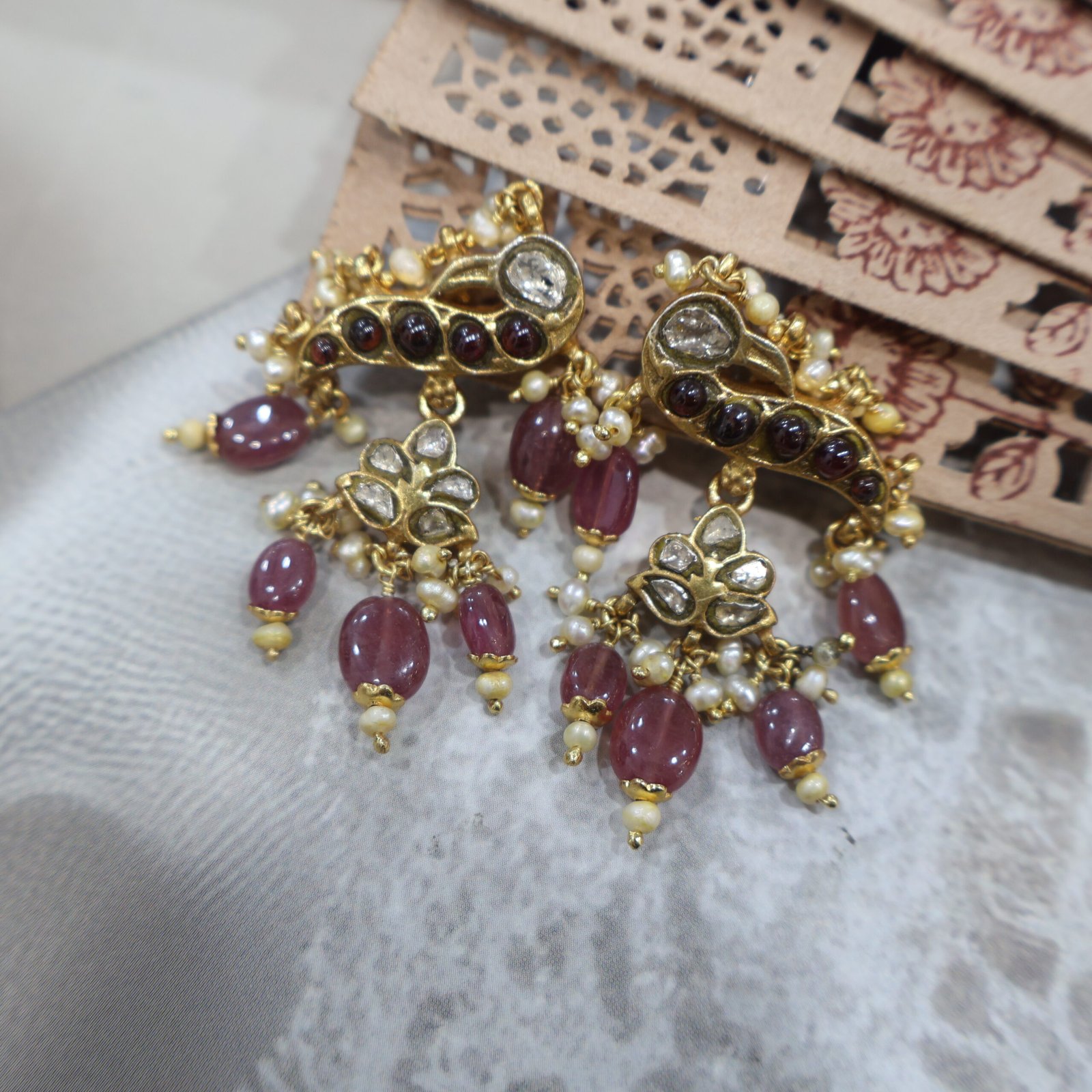 These exquisite 92.5 sterling silver earrings are a celebration of refined craftsmanship and classic elegance. Beautifully studded with radiant diamond polkies, soft-glowing freshwater pearls, and carefully selected precious and semi-precious gemstones, the design offers a perfect balance of sparkle, colour, and grace.