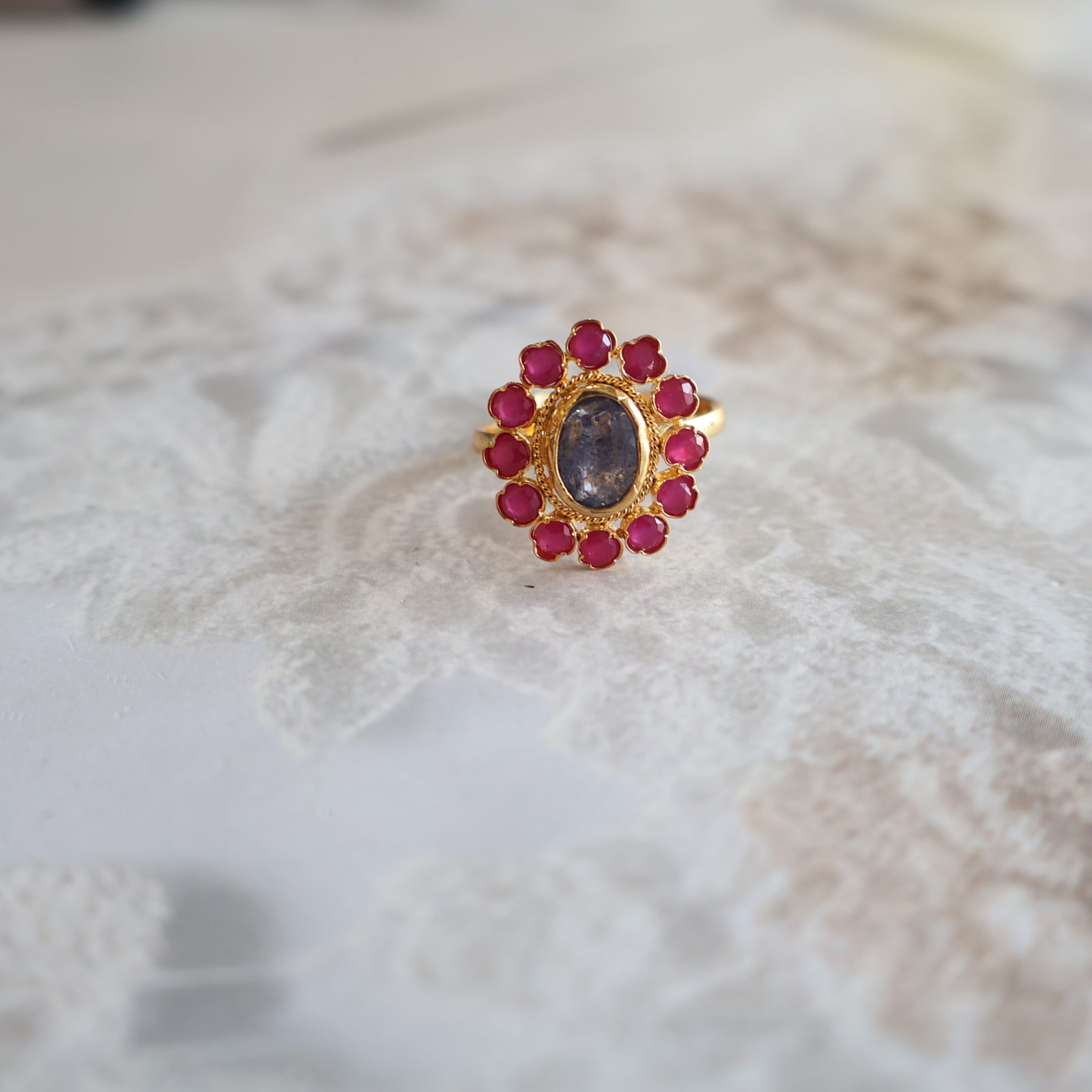 92.5 silver ring studded with tanzanite and semi-precious stones for a rich and sophisticated look.