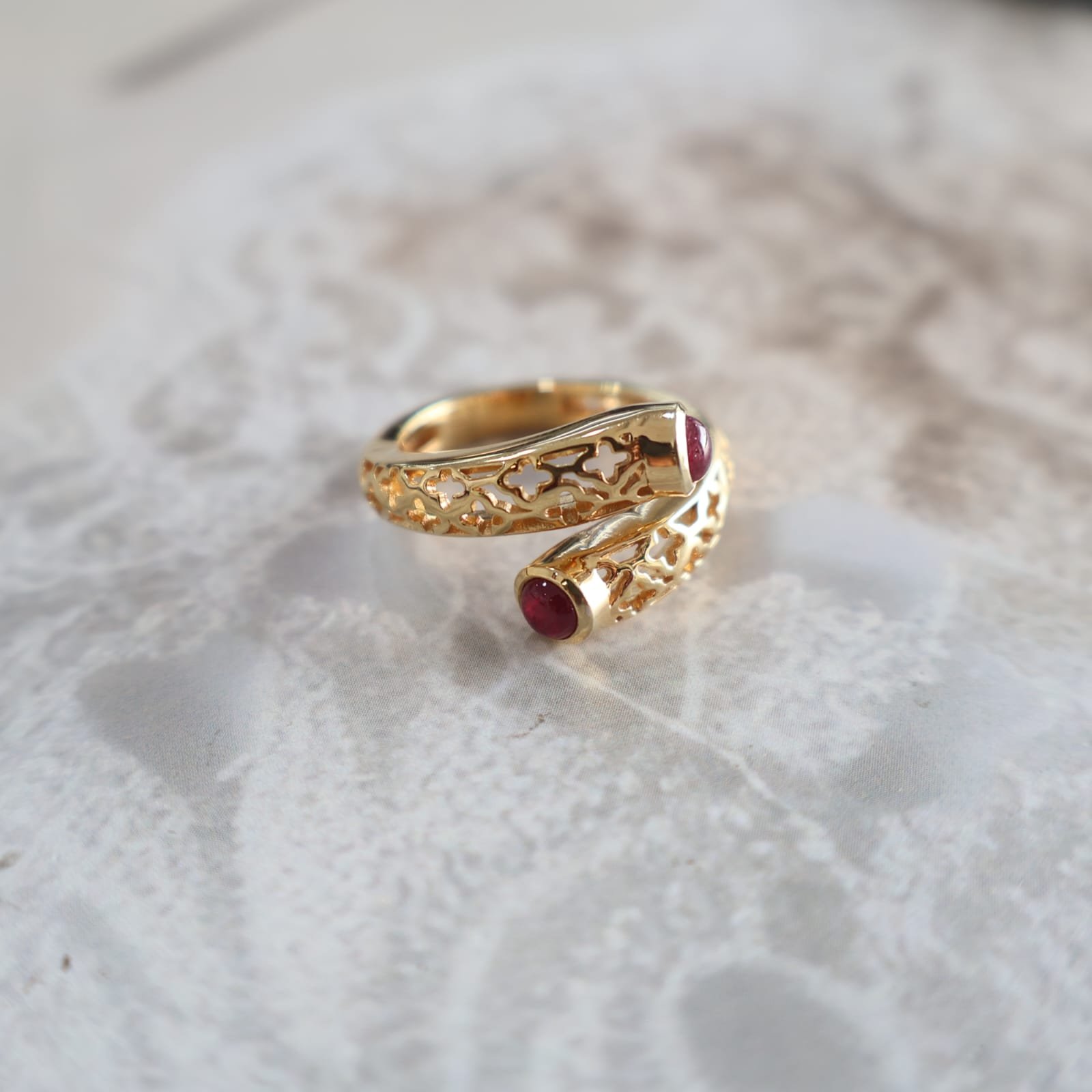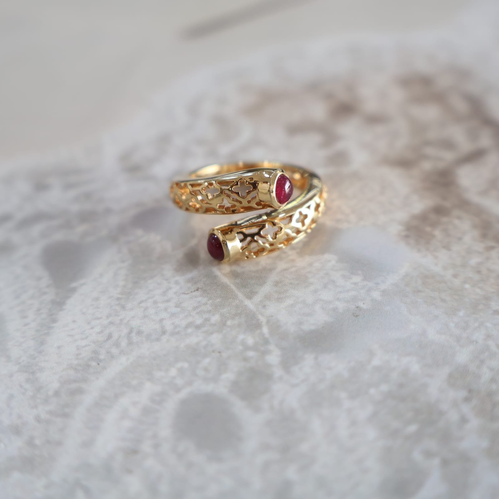 92.5 silver ring with ruby stones and gold polish for a bold, royal, and elegant look.