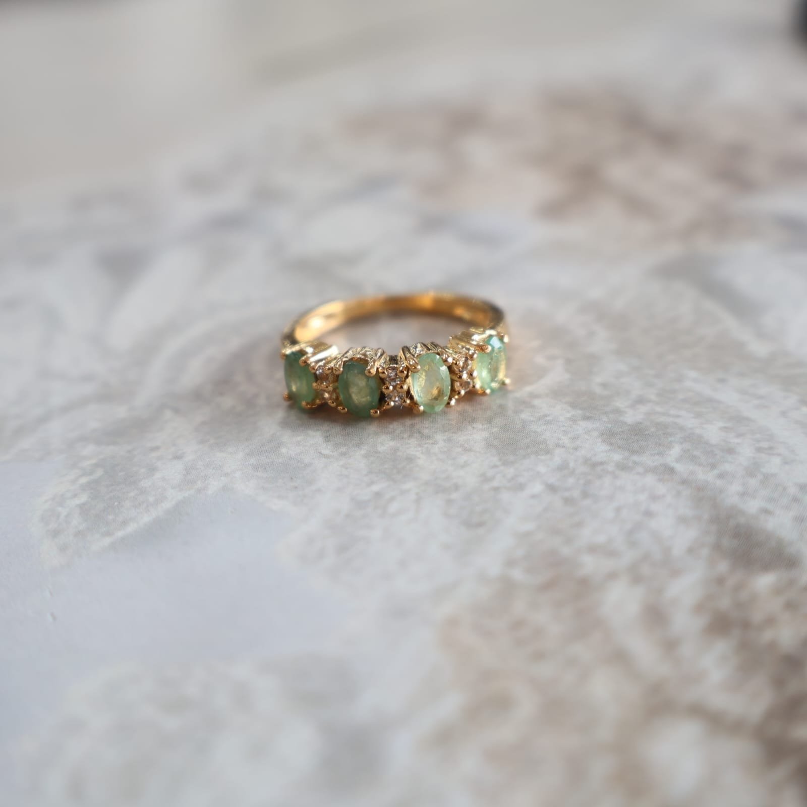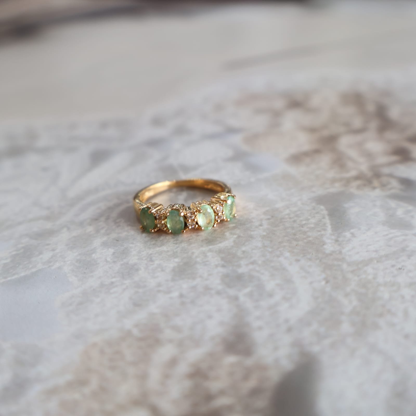 92.5 silver ring with emeralds, zircons, and gold polish for a rich, royal, and radiant look.