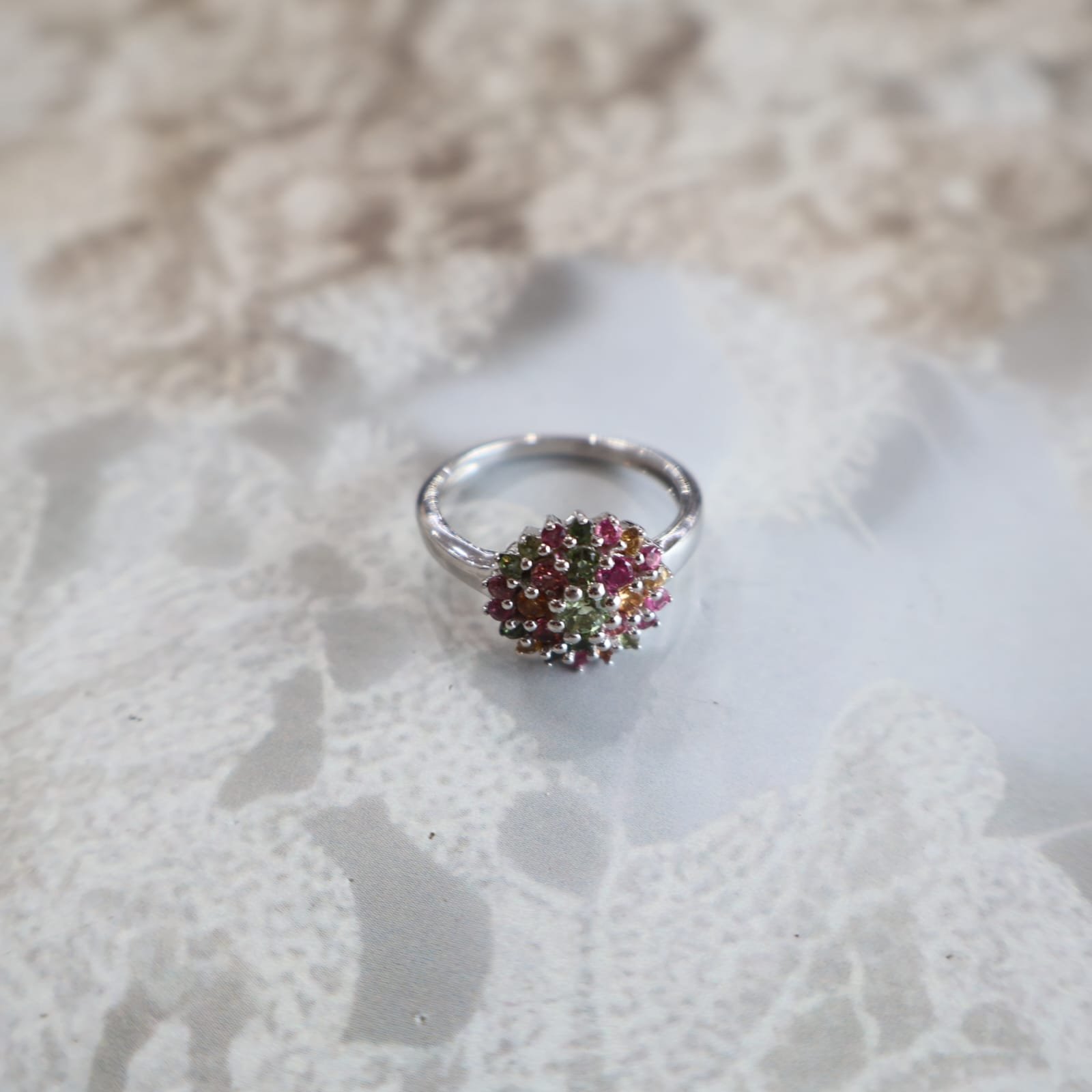 92.5 silver ring featuring vibrant tourmaline stones for a bold and elegant look.
