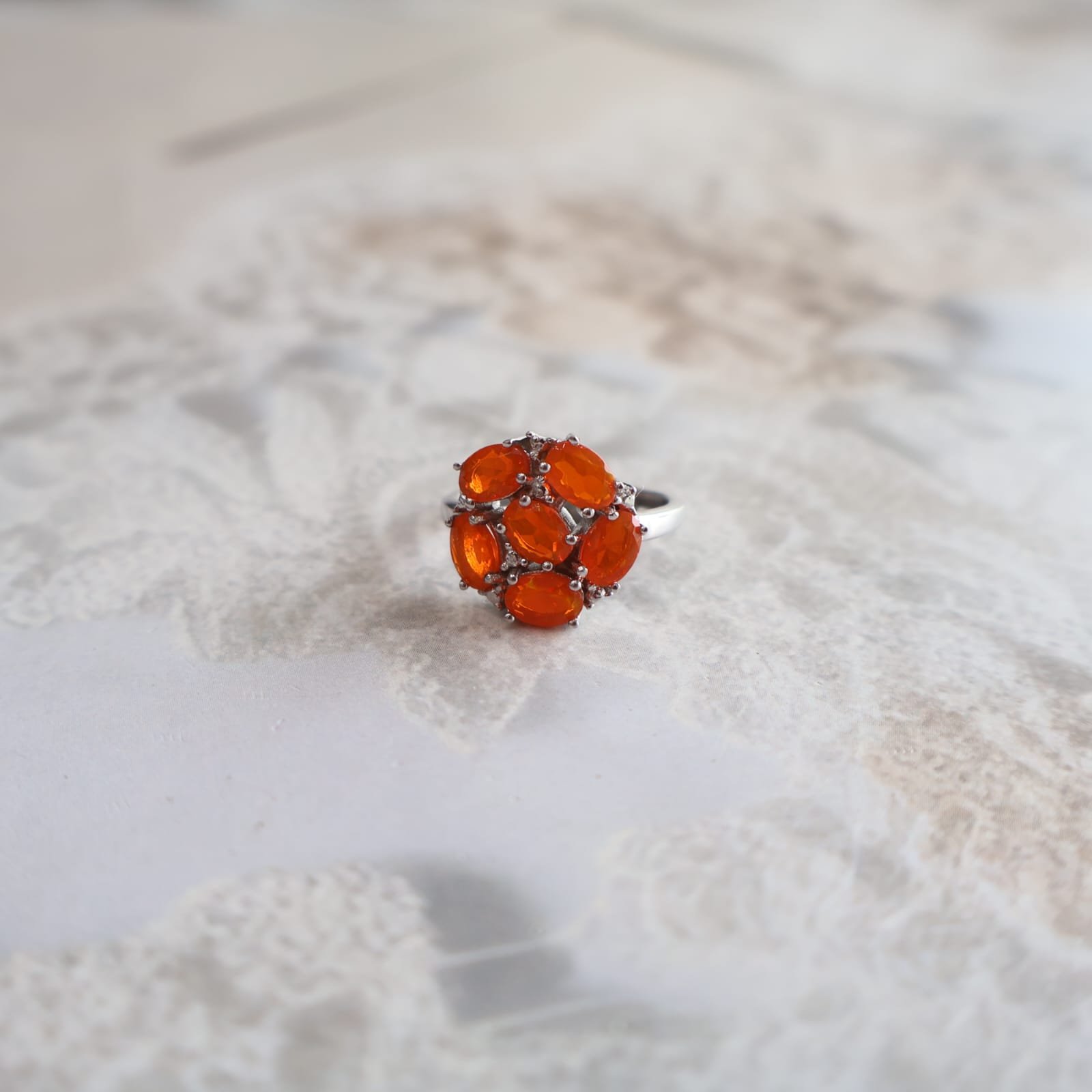 This elegant 92.5 silver ring is beautifully adorned with a vibrant orange opal, known for its warm glow and unique play of colour. The soft, fiery tones of the opal add a distinctive and eye-catching charm, making this ring a perfect statement piece. Crafted in genuine sterling silver with a smooth and polished finish, it offers both comfort and durability—ideal for festive occasions, parties, and stylish everyday wear.