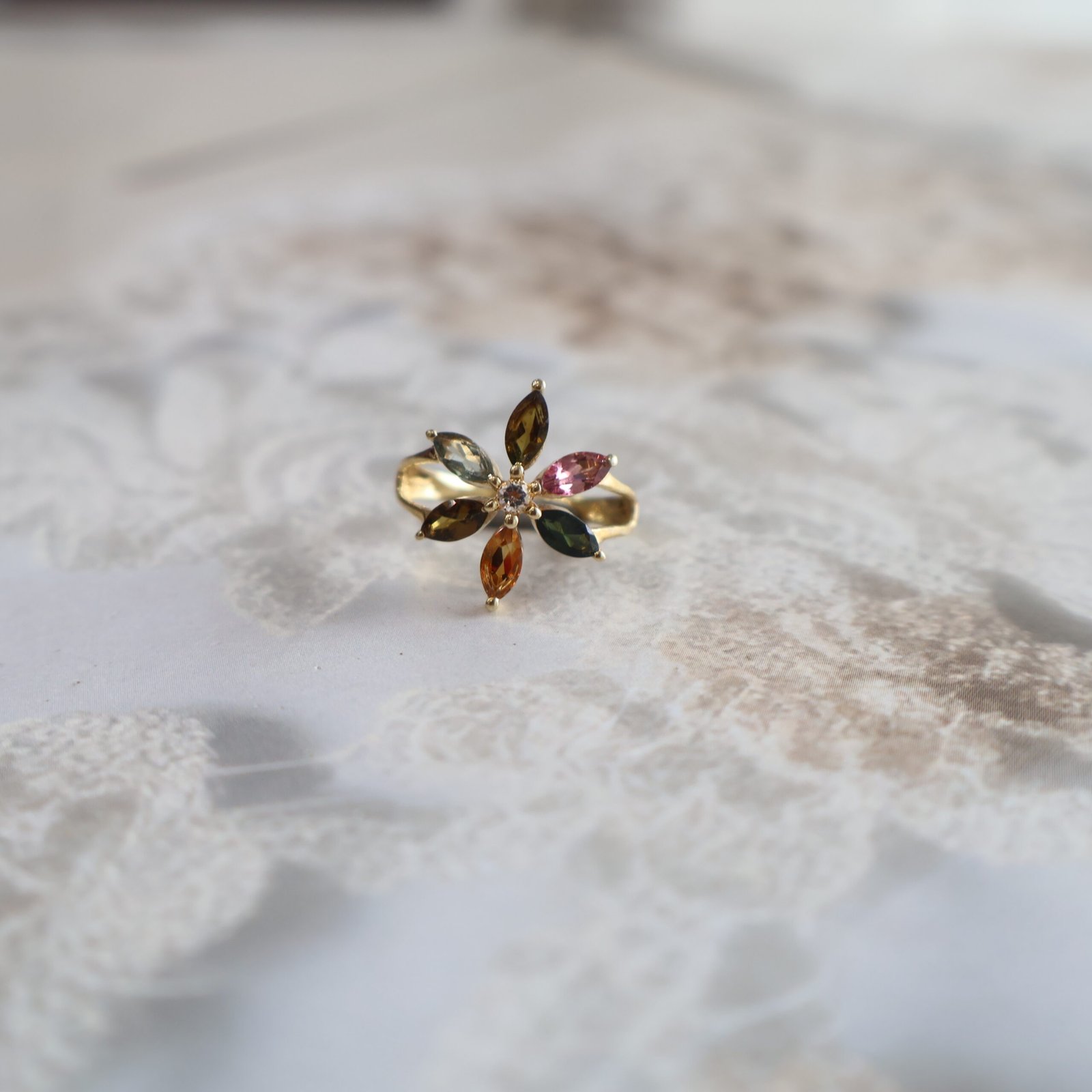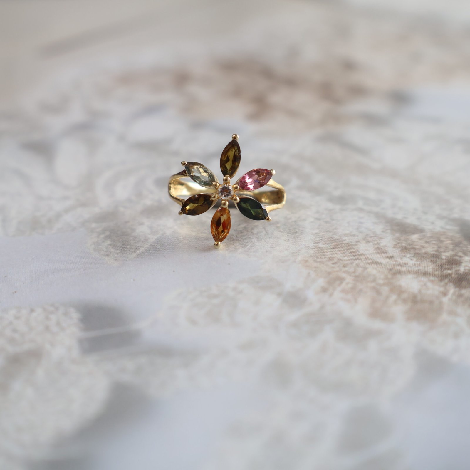 92.5 silver ring with natural gemstones and zircons for a vibrant and elegant look.