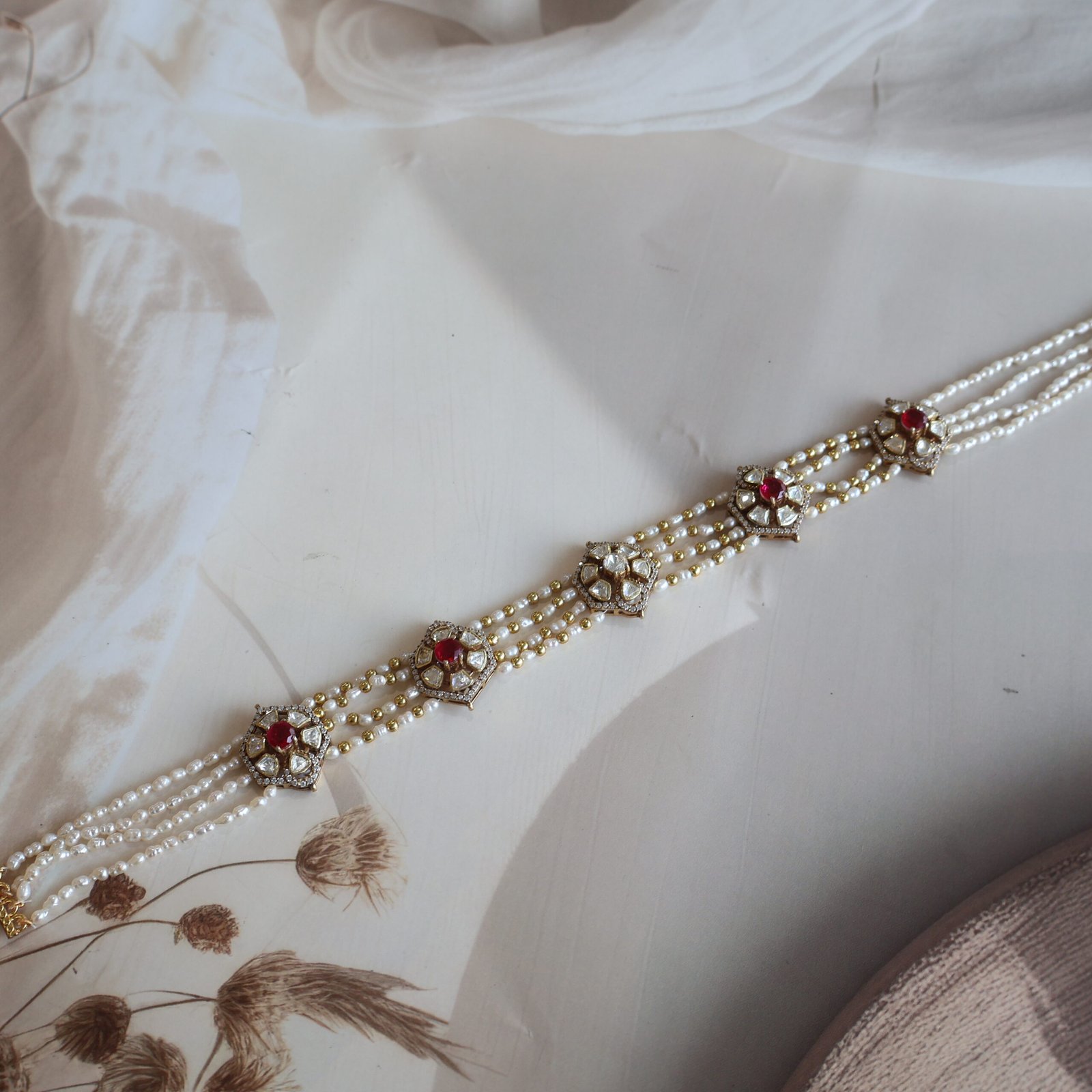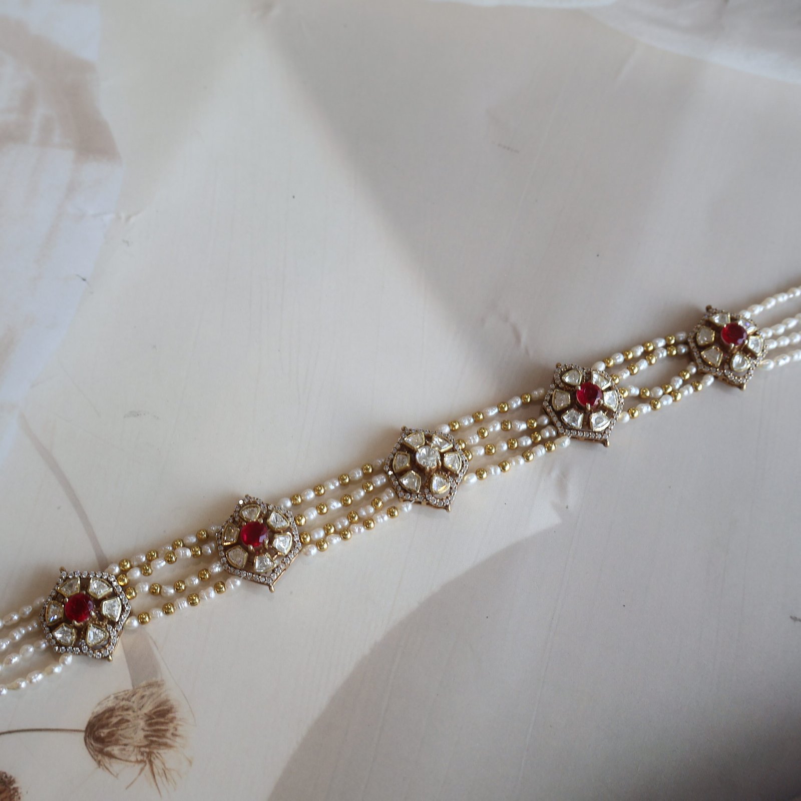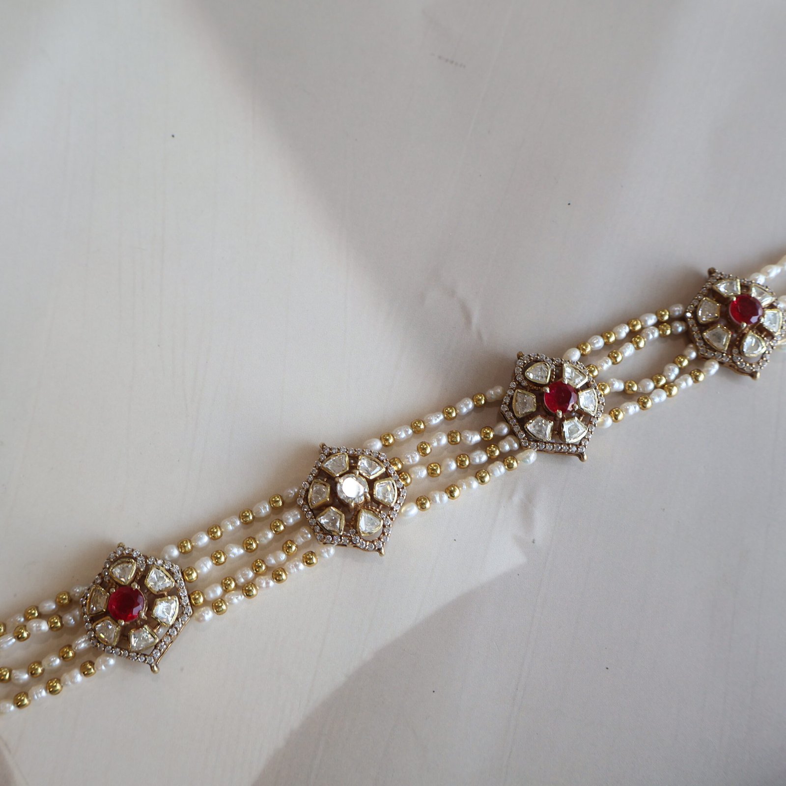 Stones: Moissanite Polkies & Freshwater Pearls