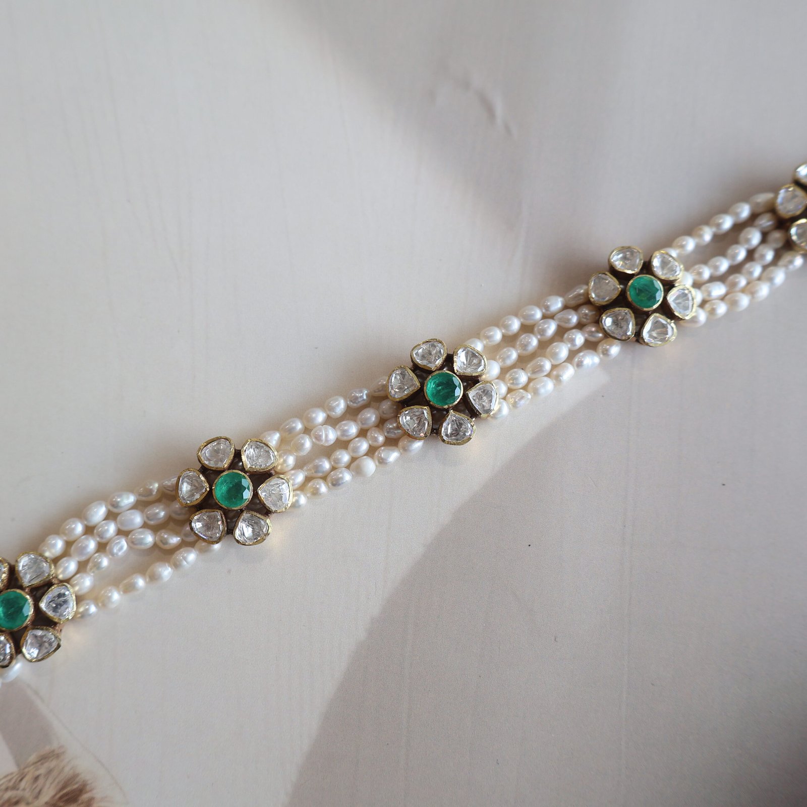 Stones: Moissanite Polkies & Freshwater Pearls