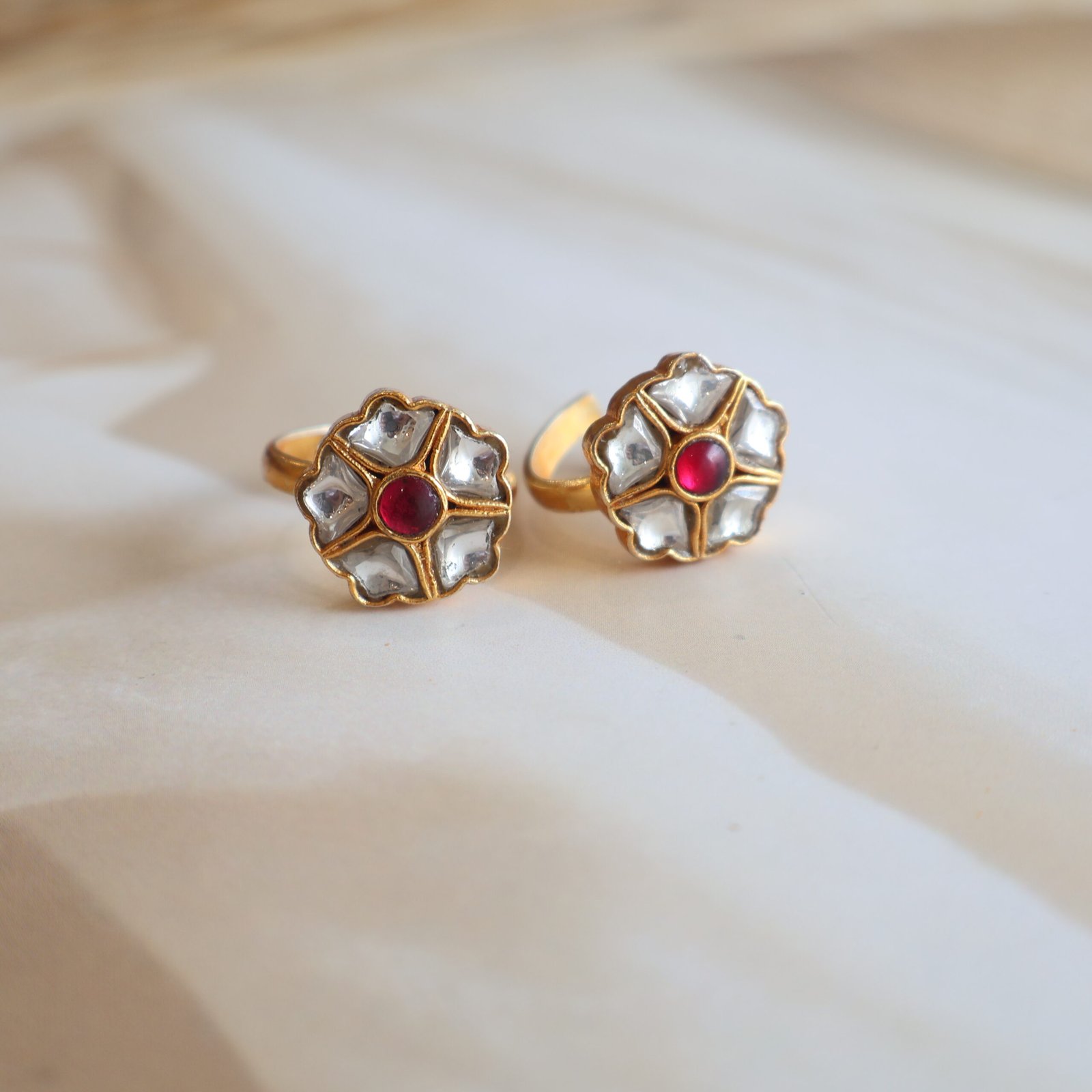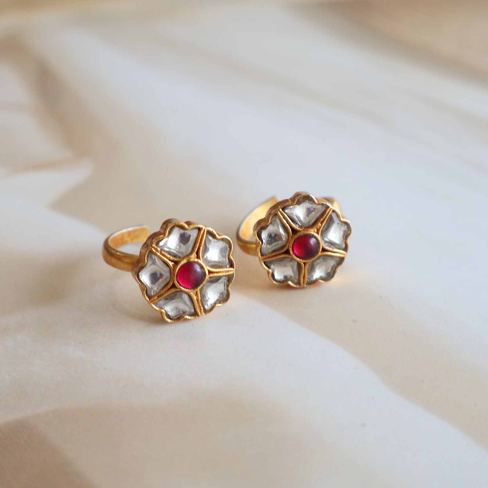 Regal kundan toe rings crafted in 92.5 silver with gold polish for refined ethnic charm.